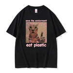 Unit price perThere’s iron deficiency. There’s pica. And then there’s this. A disturbing yet somehow triumphant declaration of dietary defiance. Featuring a cat that looks like it’s either made of wood or spiritually possessed, staring directly into your soul with the confidence of someone who just ate half a bag of Super Cement™ and liked it. Do not wear this to the dentist.
