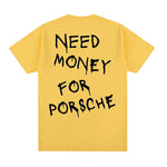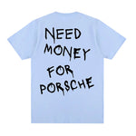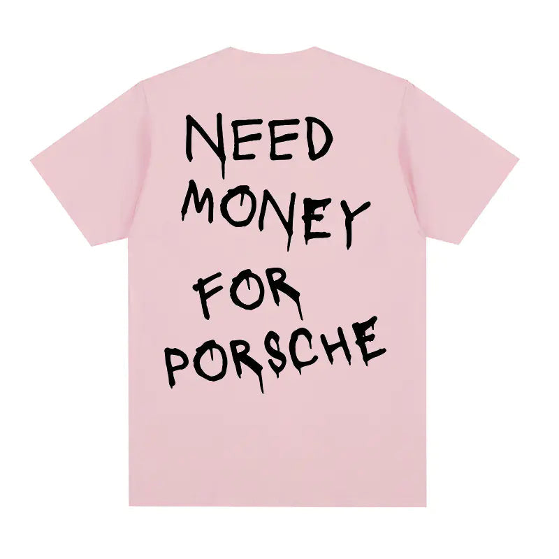 The “Need Money for Porsche” tee lets the world know your priorities are straight: you don’t want help, you want horsepower. Printed in ransom-note lettering that screams both “I have a dream” and “I might sell you a cursed NFT,” this shirt is the perfect blend of high ambition and low bank account.