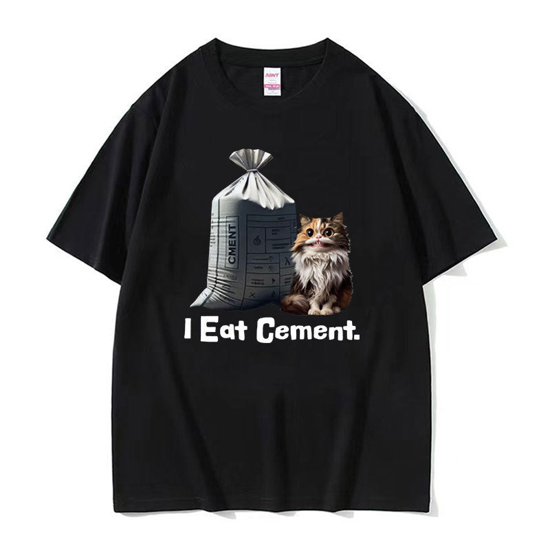 Unit price perThere’s iron deficiency. There’s pica. And then there’s this. A disturbing yet somehow triumphant declaration of dietary defiance. Featuring a cat that looks like it’s either made of wood or spiritually possessed, staring directly into your soul with the confidence of someone who just ate half a bag of Super Cement™ and liked it. Do not wear this to the dentist.