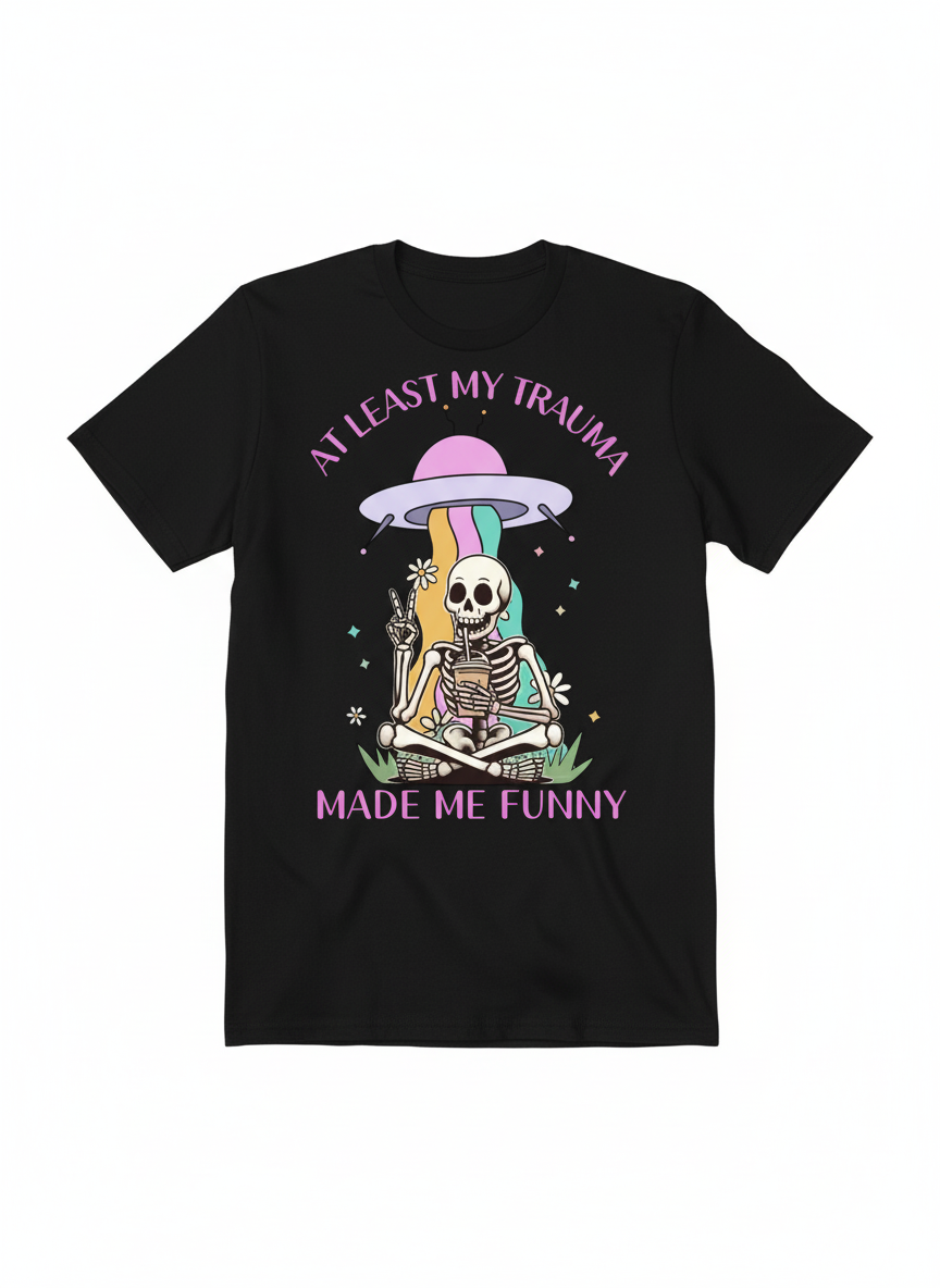 This shirt is for the girlies, the goblins, and the fully boned-out husks of humanity who turned their childhood trauma into tight five stand-up sets and a vape addiction.