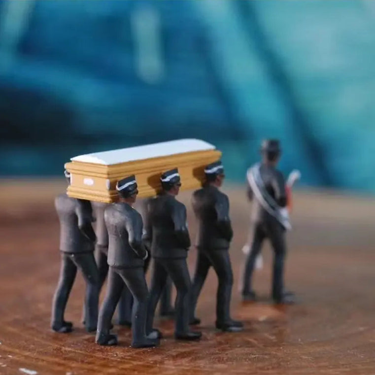 The Coffin Dancer Figurine immortalizes one of humanity’s greatest memes — the Ghanaian pallbearers who danced their way into our hearts and timelines. Perfect for your desk, your coffin, or as a subtle reminder that life’s short, so you might as well go out with rhythm.
